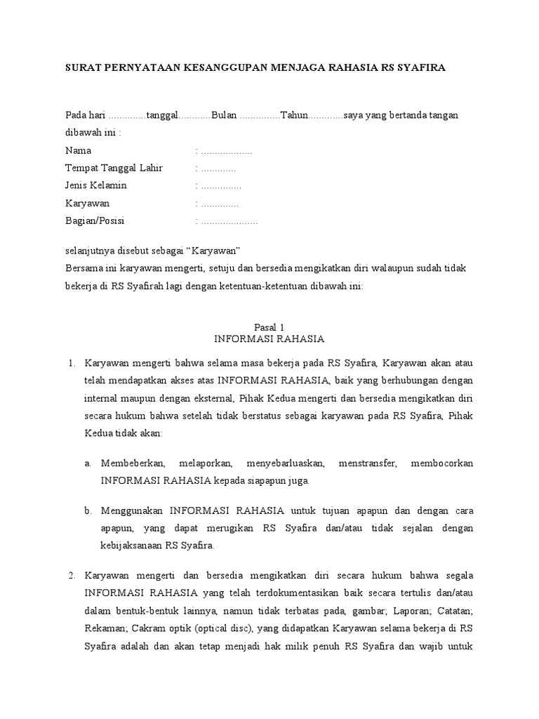 Maka pekerja tersebut akan diminta untuk menandatangani kontrak yang berisikan kesepakatan dalam rangka tidak. Contoh Surat Pernyataan Kerahasiaan Perusahaan In Addition It Will Include A Picture Of A Kind That Might Be Observed In The Gallery Of Contoh Surat Pernyataan Kerahasiaan Perusahaan. Gambar yang baru selalu diunggah oleh anggota yang aktif setiap harinya pilih koleksi gambar lainnya dibawah ini sesuai dengan kebutuhan untuk mulai mengunduh gambar.